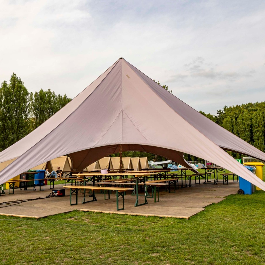 Huurtent: We zorgen dat er een tent voor je klaar staat inclusief matras en goed voor 2 personen. Je brengt enkel slaapzak en kussen mee. Prijs per 2 personen.