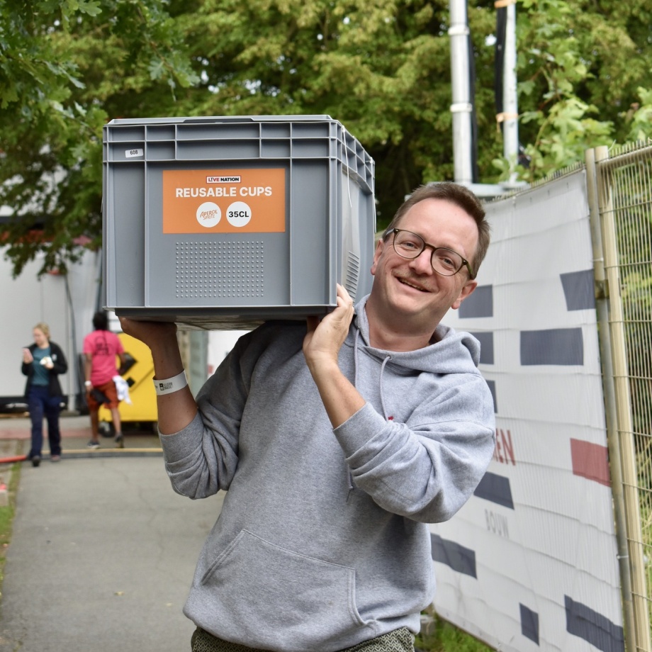 - Herbruikbare bekers en eetbakjes zorgen voor minder afval op het terrein.